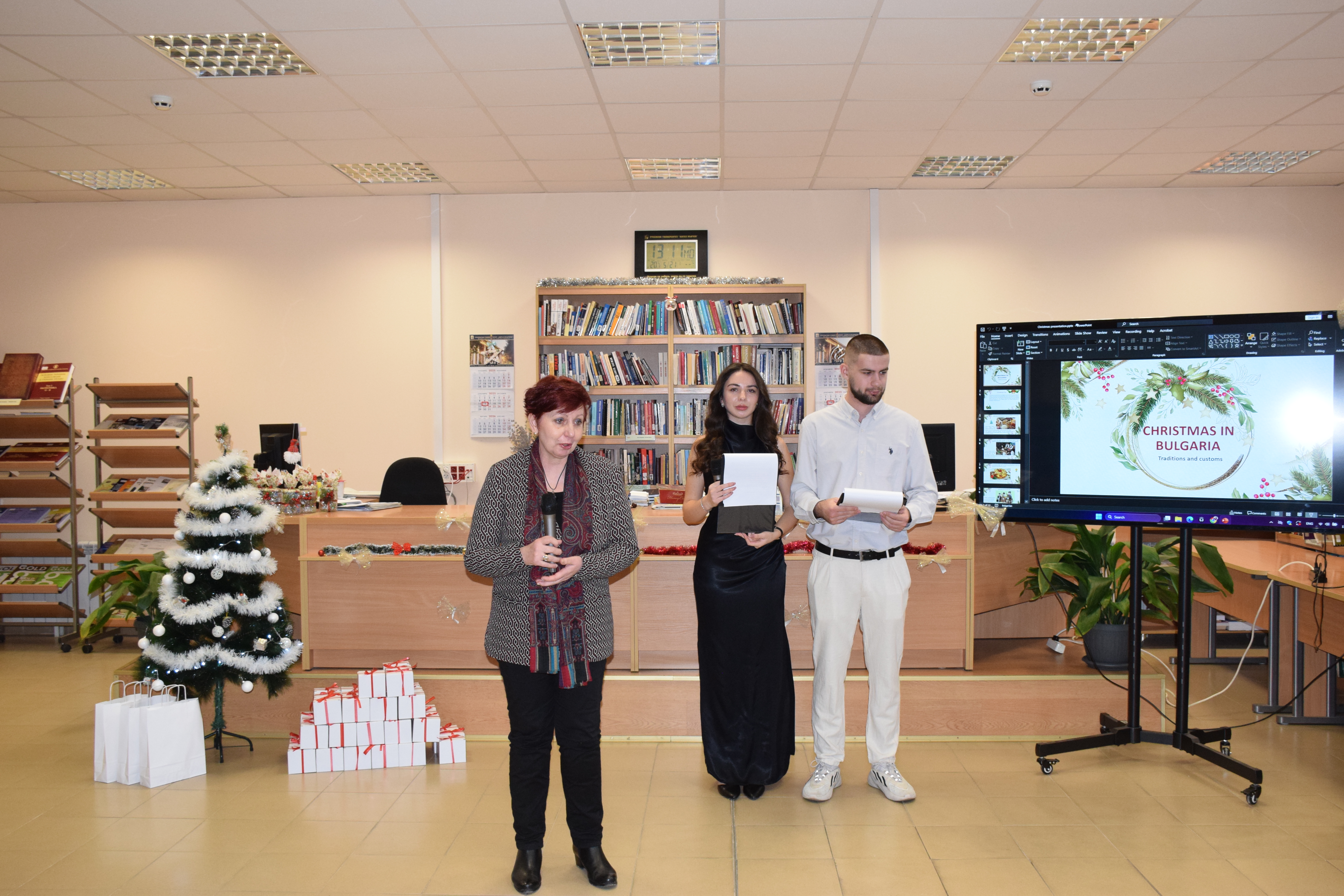 Today, December 17th , 2025, a Christmas party was held in the reading room of the library of the university of Ruse for foreign students studying at Ruse Alma Mater. It was organized by the Foreign Students Department and dedicated to the traditions of Christmas celebrations in Bulgaria.
